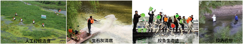 常見的水草處理方法有人工打撈清理、生石灰清底、投魚生態(tài)法、投撒藥劑、機(jī)械割草等。